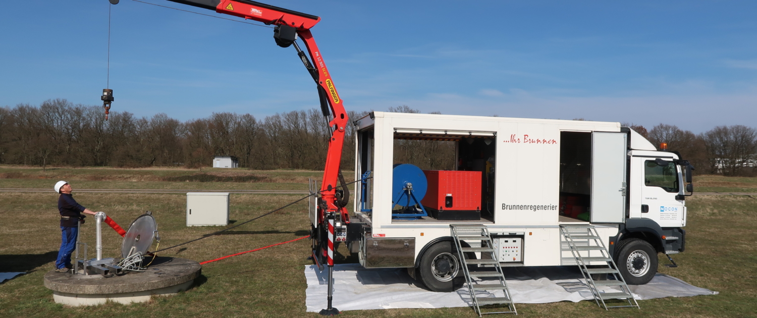 Egal, welchen Brunnen Sie betreiben: Mit einer Brunnenregenerierung durch die Nocon GmbH sind Sie auf der sicheren Seite. Durch die genaue Analyse der Brunnendaten, den Einsatz unserer Spezialmaschinen und des passenden Regenerierungsverfahrens sind unsere geschulten Fachleute in der Lage, jede Art von Brunnen in einen optimalen Betriebszustand zu versetzen.